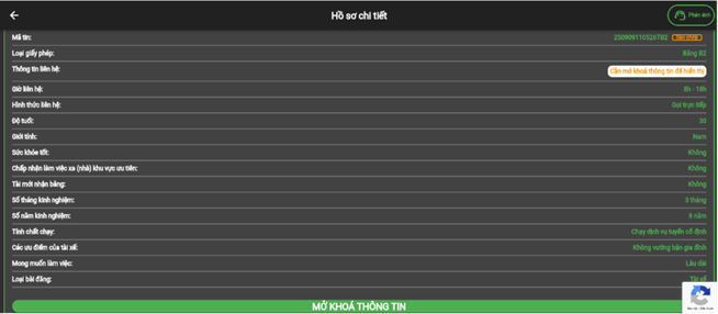 – Không thể mở khóa thông tin hoặc không hiển thị được thông tin liên hệ sau khi đã xác nhận và trừ phí;